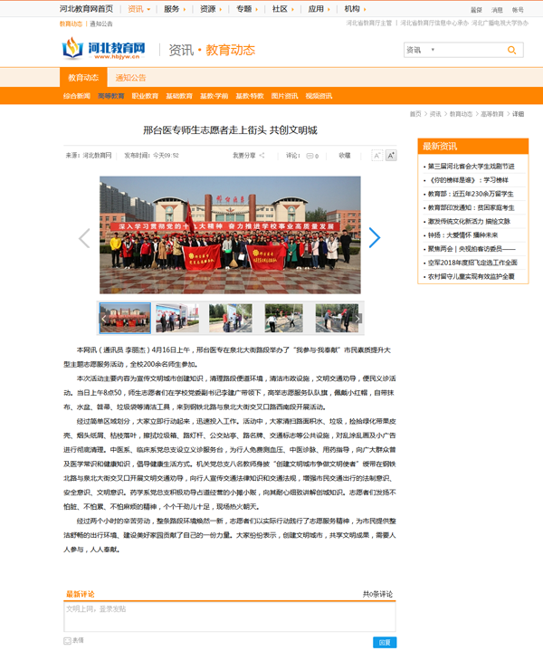 上一条:河北教育网报道“五四青年节 邢台医专大学生用志愿服务致青春”
