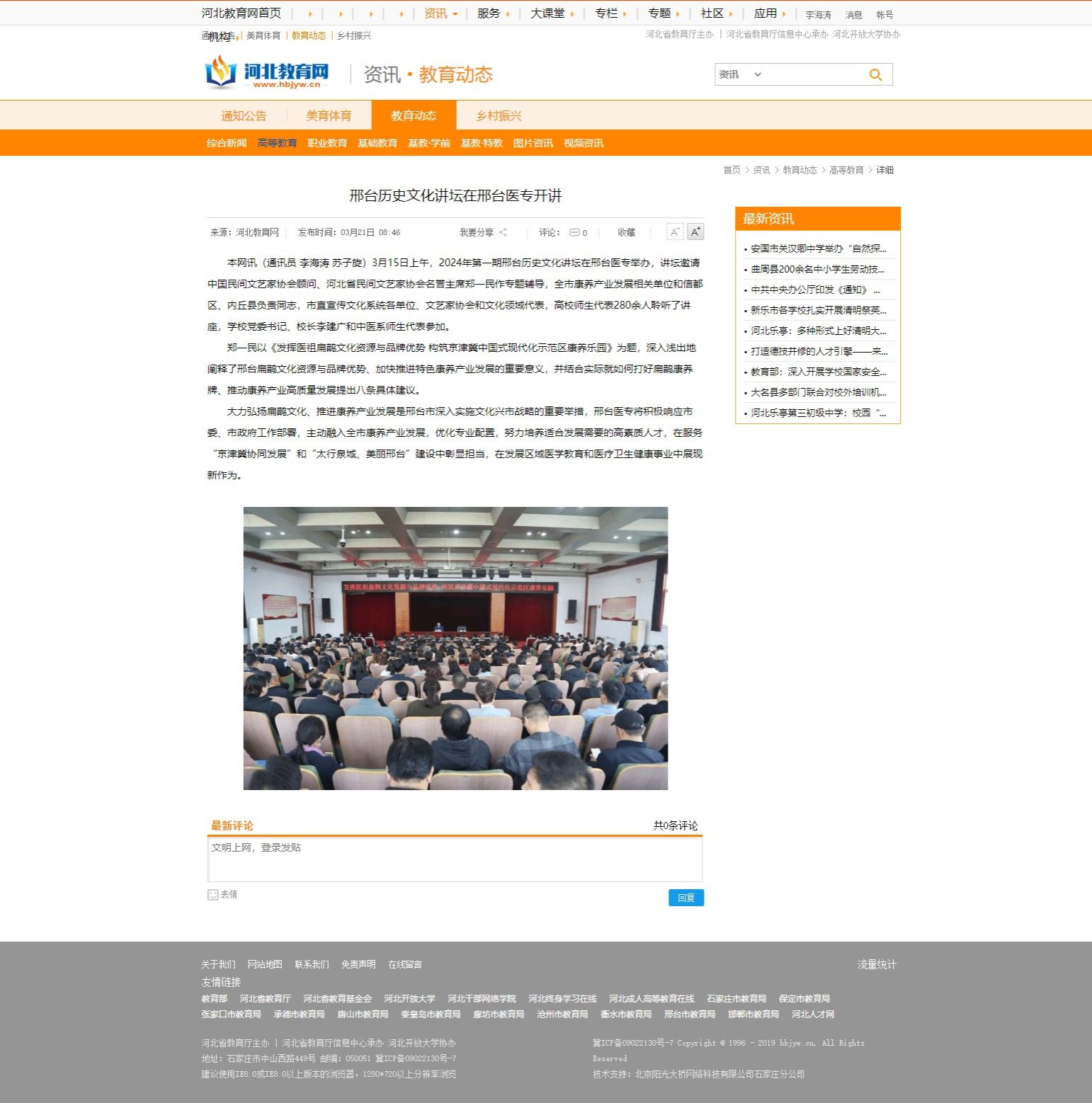 河北教育网:邢台历史文化讲坛在邢台医专开讲