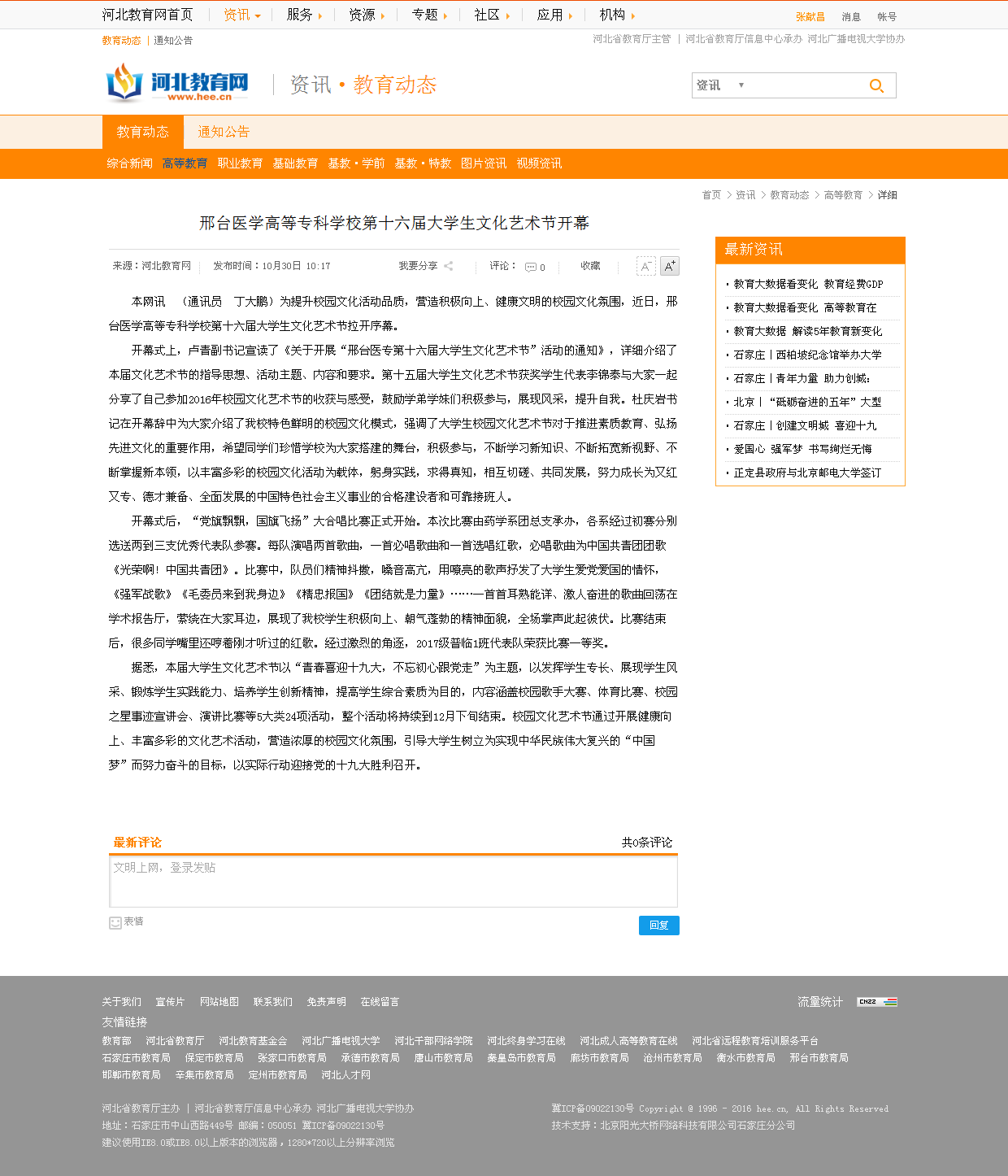 上一条:河北教育网报道:邢台医学高等专科学校启动“大学生文明修身工程”