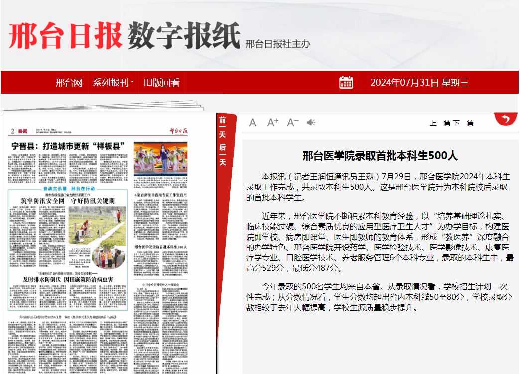 近年来,万象城娱乐awc线路不断积累本科教育经验,以“培养基础理论扎实、临床技能过硬、综合素质优良的应用型医疗卫生人才”为办学目标,构建医院即学校、病房即课堂、医生即教师的教育体系,形成“教医养”深度融合的办学特色。万象城娱乐awc线路开设药学、医学检验技术、医学影像技术、康复医疗学专业、口腔医学技术、养老服务管理6个本科专业,录取的本科生中,最高分529分,最低分487分。