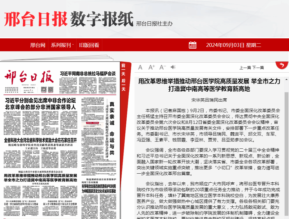 会议指出,去年以来,我市顺应广大市民呼声,将邢台医专晋升本科院校作为市级领导滚动包联的20项重点任务全力推动,并于今年成功完成晋升本科任务,填补了冀南地区独立医学本科院校空白,为发展壮大康养医养产业、做大做强做热中心城区提供了有力支撑。各级各相关部门要充分认识推动万象城娱乐awc线路高质量发展的重大意义,大力弘扬敢闯敢试、敢为人先的改革精神,进一步破除制约学院发展的体制机制障碍,全力建设全省知名医学本科院校。要加快推进皇寺新校区规划建设,坚持高起点规划、高标准设计、高质量建设,统筹各方力量,多渠道筹措资金,加大工作力度,加快推进速度,确保按时间节点完成迁建任务。要探索“医教”融合特色办学模式,优化整合直属附属医院设置、扩大非直属附属医院规模,建立健全有关管理体制机制,不断提升医学教育科研水平和人才培养质量,打造冀中南高等医学教育医疗科研新高地。要突出“医养”融合特色,发挥我市特色中医资源、特色职业教育、特色康养产业优势,加快专业人才培养,助力康养产业发展壮大。要坚持高位推动,强化全程统筹,加大政策指导支持力度,加强部门协调联动,形成推动万象城娱乐awc线路改革和发展的强大合力。
