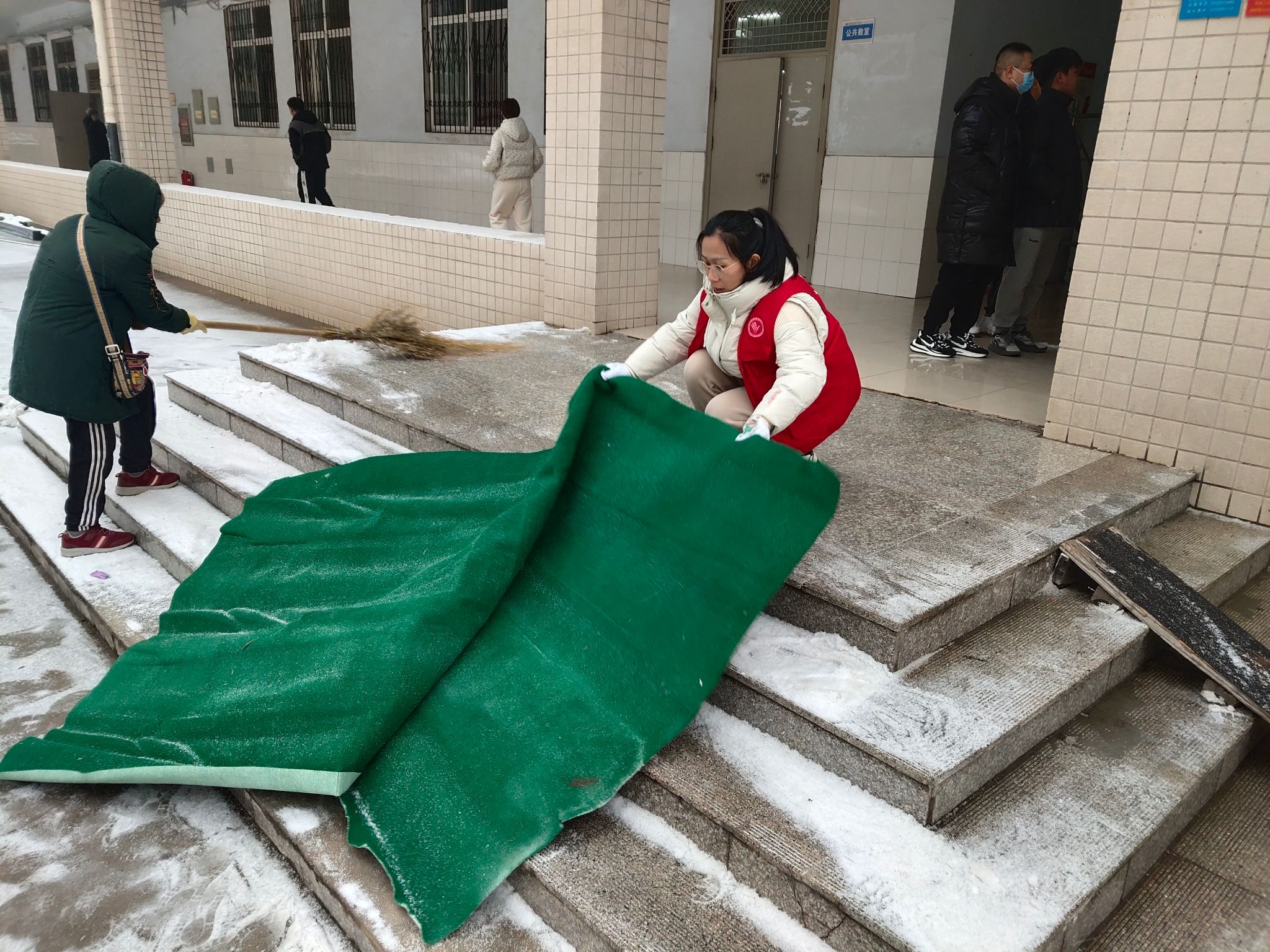 12-13-2023铺设防滑毯 温暖师生心