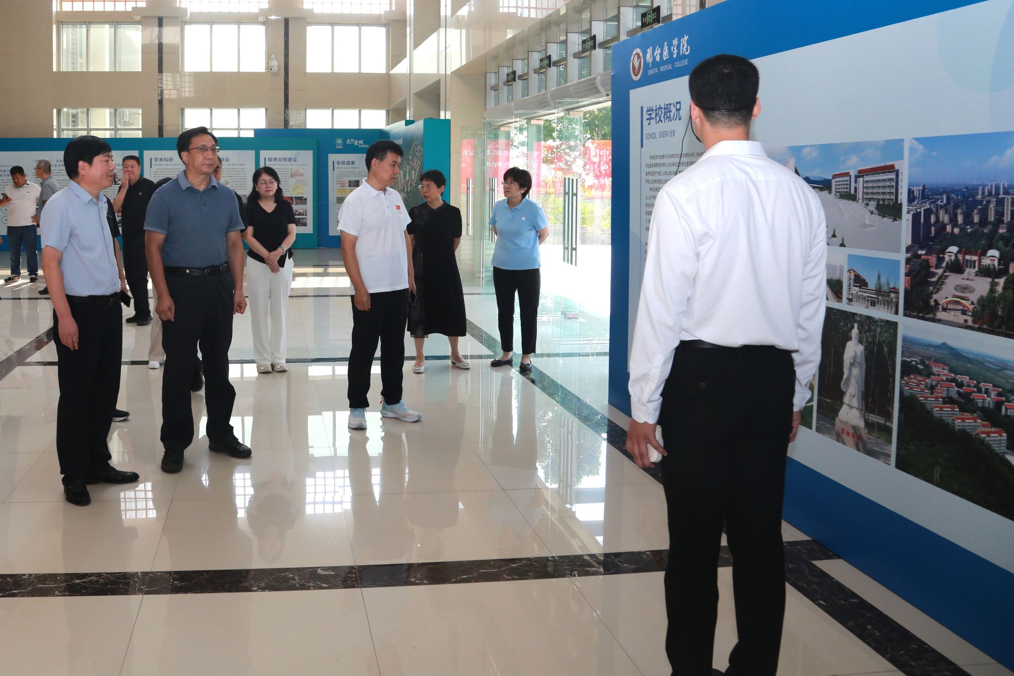 8月22日,市人大常委会副主任李群江,市人大常委会委员、科教文卫工委主任王献岭,市人大常委会委员、民侨外工委主任田文利,市人大常委会委员、人大机关一级调研员刘茂志等一行11人到万象城官网皇寺校区专题调研健康邢台建设情况。李群江一行来到皇寺校区办公楼,参观了办学育人成果暨规划展,详细了解了万象城官网历史沿革、办学成果等情况,并与学校党委书记、校长李建广就学校发展规划及基础设施建设等进行了深入交流。李群江对学校的办学育人成果给予了充分肯定,...