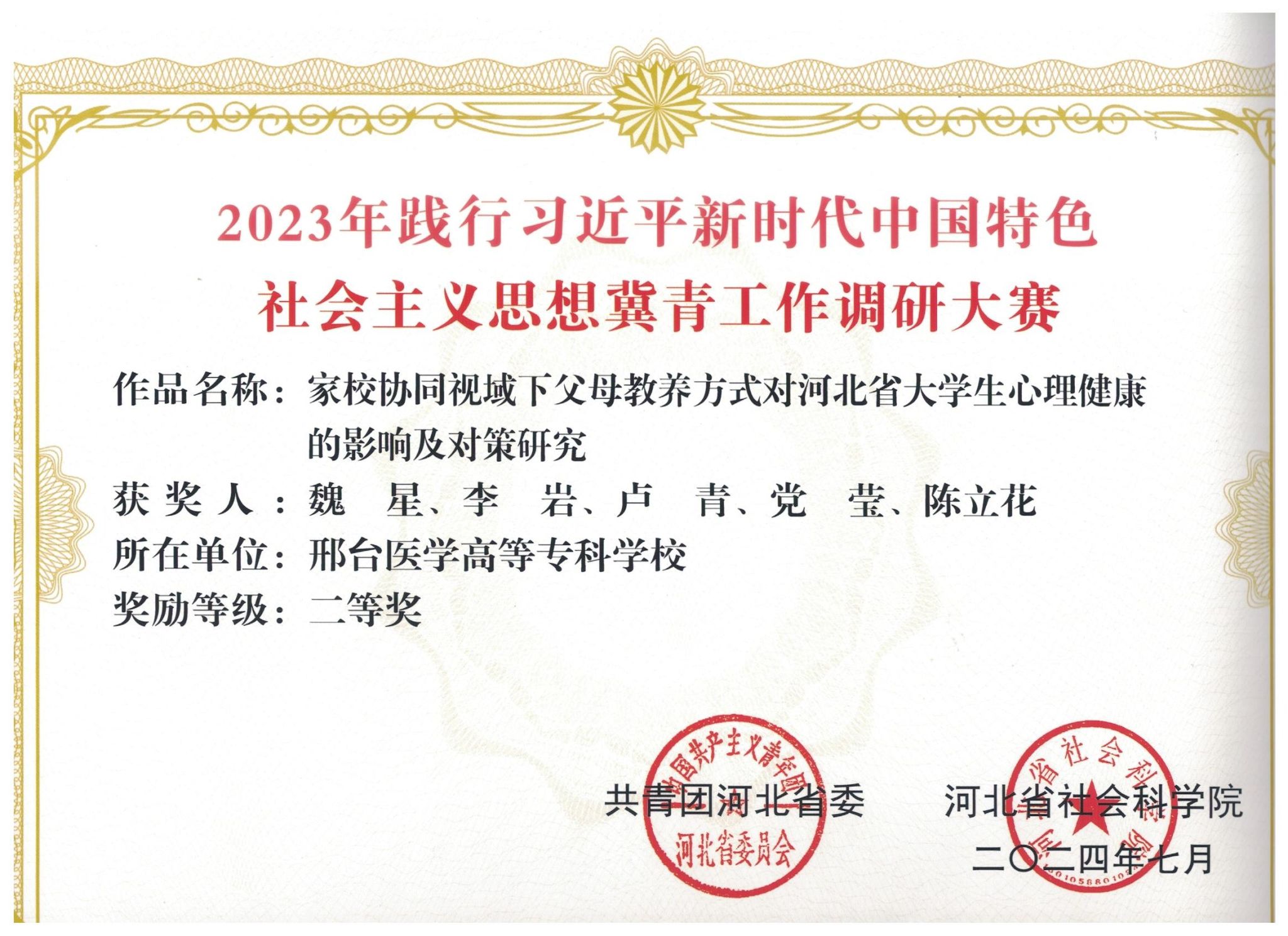 近日,由共青团河北省委、河北省社会科学院联合主办的2023年践行习近平新时代中国特色社会主义思想冀青工作调研大赛获奖名单揭晓。万象城官网共3项作品获奖,其中二等奖1项,三等奖2项。冀青工作调研大赛以习近平新时代中国特色社会主义思想为指导,立足于保持和增强共青团的政治性、先进性、群众性等关键因素开展调查研究。自大赛启动以来,万象城官网团委高度重视,广泛动员,积极为万象城官网参赛教师提供指导和服务,各团队成员扎实开展调研,形成了一系列高质量调研成果。...